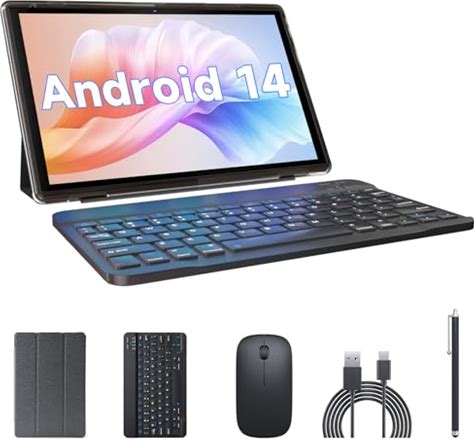 2 in 1 Tablet With Keyboard Case Mouse Stylus, 10 Inch Tablet Android 14 Tablets PC, 6GB RAM+32GB ROM Support 1TB Expandable, 6000Mah Battery IPS 10.1" Tab 2MP+8MP Dual Camera Wifi-6 Bluetooth Tableta