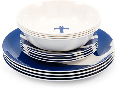 12-Piece Melamine Beach Dinnerware Set, Plates And Bowls, Oceanic Sea Life, Ideal For Outdoor Dining