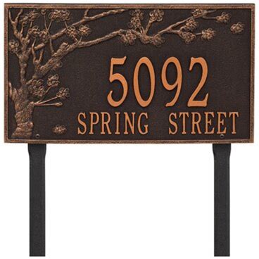 Personalized Spring Blossom Estate 2-Line Lawn Address Sign Plaque Color: Bronze/Gold Customize: Yes