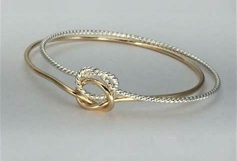 Twisted Double Knot Bangle Bracelet, Gold And Silver, Argentium, Double Knot Bangle