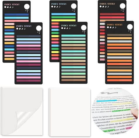 1800Pcs Adhesive Strips Pastel Long Highlight Stripes + 100Pcs Transparent Sticky Notes, Sticky Notes Highlighter Strips
