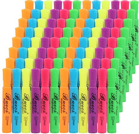 Buecs Highlighters Bulk Pack, 96 Count, Assorted Colors, Chisel Tip, Suitable For Adults Highlighting Planner Notes, Office School Supplies