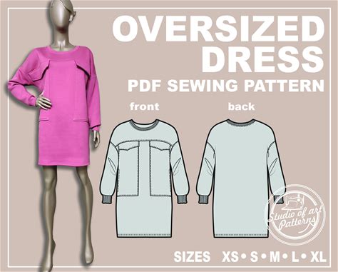 Oversized Dress Sewing Pattern: Warm Short Dress (PDF Digital Download, 5 Sizes XS-XL, A4 Print-At-Home/A0 Plotter Format)