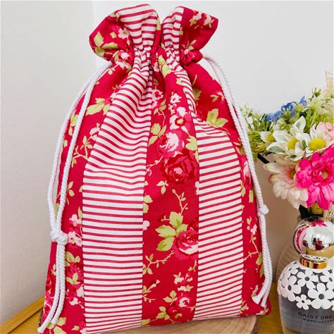 Pretty Fabric Drawstring Bag, Patchwork Bag, Pretty Florals, Moda Fabric, Lined Bag, Pretty Gift, Mothers Day Gift, Red Bag