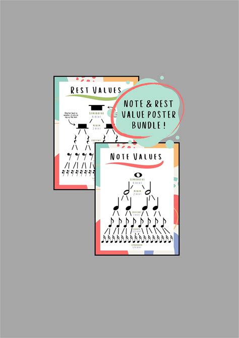 Note And Rest Values Piano Music Poster Bundle - Note Values - Rest Values - Music Theory - Music Education - Music Decor - (Digital Print)