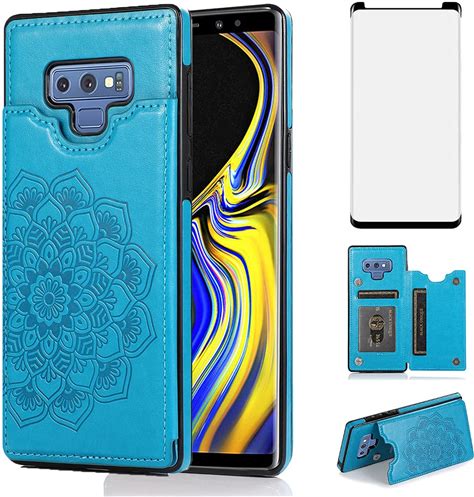 NKECXKJ Design For Samsung Galaxy Note 9 Case With Tempered Glass Screen Protector Credit Card Holder Slot, Leather Wallet Phone Cases Stand Kickstand
