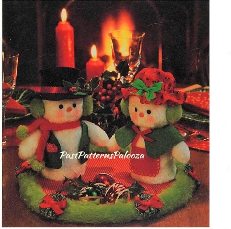 Vintage Christmas Sewing Pattern 7" Mr And Mrs Frosty The Snowman Soft Toy Dolls PDF Instant Digital Download Faux Fur Fabric Snow Couple