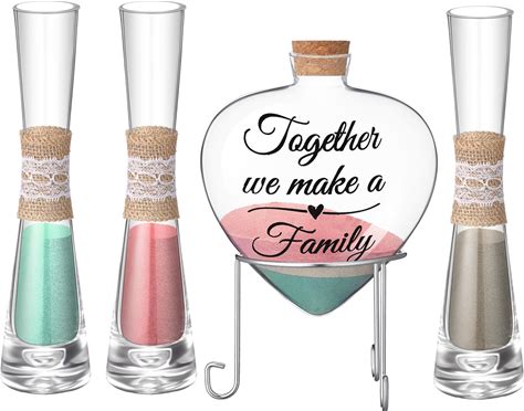Irenare 7 Pcs Unity Sand For Wedding Ceremony Set Include 1 Heart Shaped Bottle 3 Wedding Ceremony Vase 3 Sand With Metal Stand, Cork Stopper For