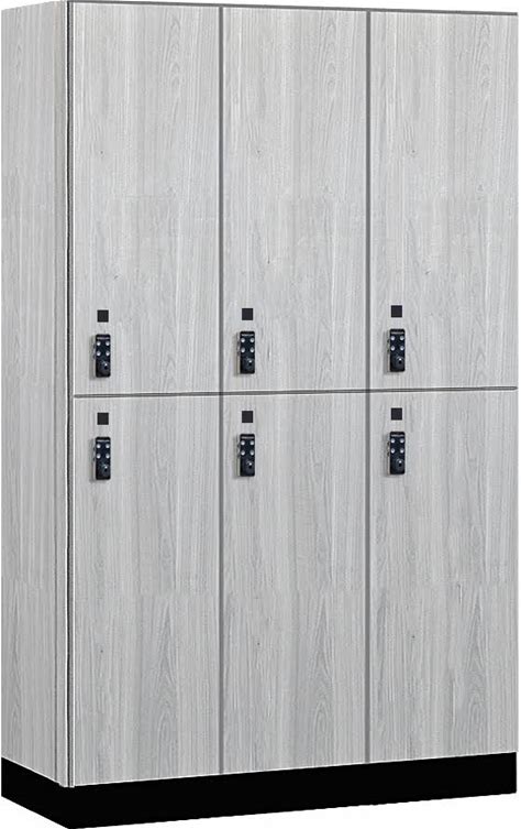 Salsbury 15" Wide Premier Wood Locker - Double Tier - 3 Wide - 6 Feet High - 18" Deep - Winter Fog - Resettable Combination Locks