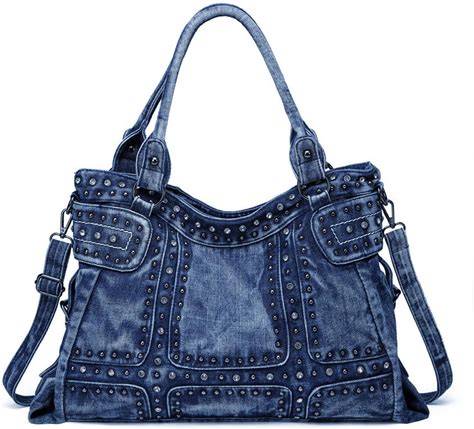 Ipinee Designer Denim Handbags For Women Hobo Tote Bag Crossbody Denim Purses Blue Jean Shoulder Bag
