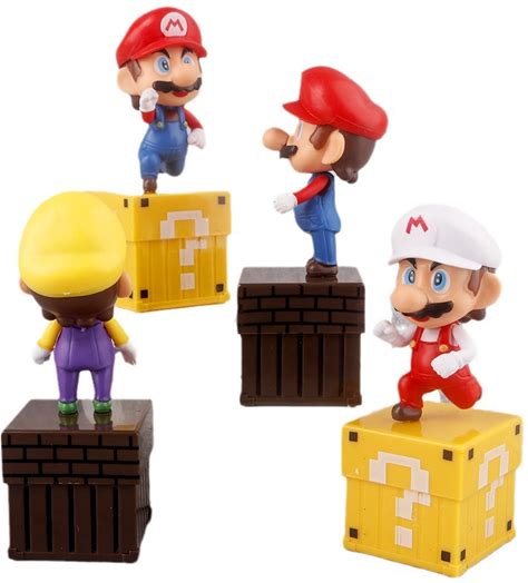 Super Mario Bros Mario With Question Mark Block Figure Set 4 Pcs