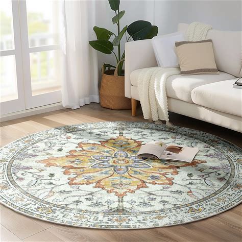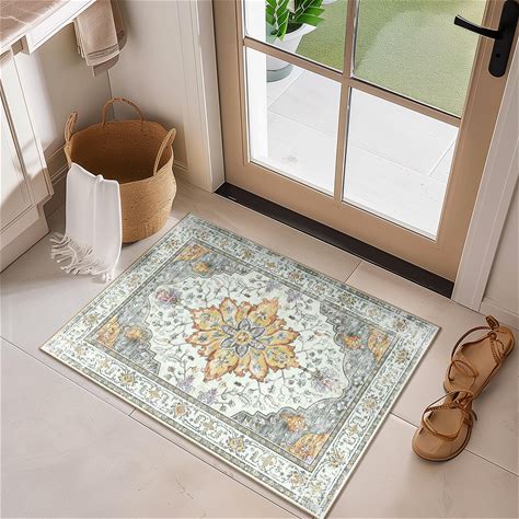RELEANY Area Rugs 2'X3' Washable Non-Slip, Floral Vintage Distress Print Pattern Medallion Carpet For Living Room Bedroom Dining Room, Light Yellow