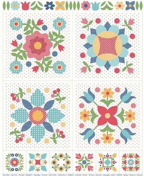 Flea Market Applique Panel P10231 Yellow - Riley Blake Designs - Vintage Floral Flowers Dots - Lori Holt - Quilting Cotton Fabric