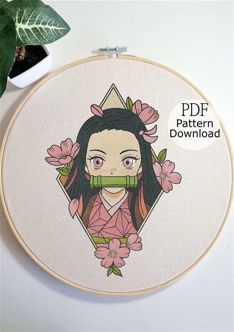 Nezuko Embroidery Pattern, Demon Slayer Embroidery Design, Anime Hand Embroidery, Hand Embroidery For Begginer, Japanese Embroidery