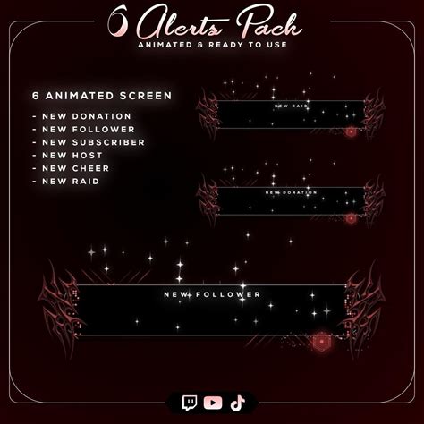 Red Animated Stream Alerts Pack | 6 Twitch Alerts | OBS & Streamlabs Alerts | Gamer Alert Overlay