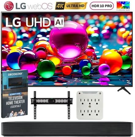 Lg 50Ua7700pub 50 Inch Ua77 LED AI 4K UHD Smart Webos TV 2025 Bundle With Skm1 2.0 Ch. Soundbar, 37"-70" TV Wall Mount, 6-Outlet Surge Adapter & Deco