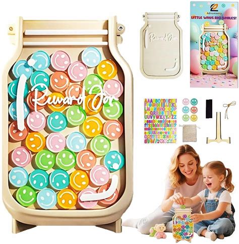Adinomiency Kids Reward Jar & Behavior Chart - Classroom & Home Potty Training Chart With 80 Stickers - Teacher/Parent Tool For Chores, Homework, Good