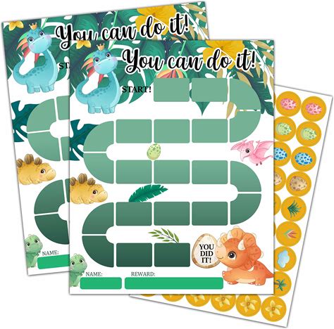 Dinosaur Theme Reward Chart, 10 Kids Behavior Charts With 216 Round Stickers, Sticker Incentive Responsibility Chart For Teens Kids Toddler Homework