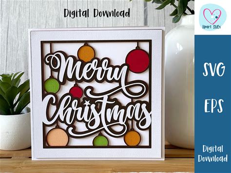 Christmas Card Baubles SVG | Merry Christmas | Layered SVG | SVG Files Cricut | Cut Out Card | Commercial Use - Free Envelope Template