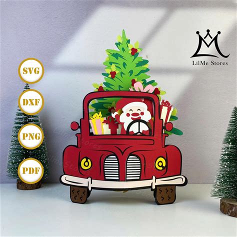 Merry Christmas SVG Card With Gnomes Truck, Christmas Card Cricut, Christmas Car Svg, Laser Cut Christmas Truck Card DXF Cdr Pdf Png Digital