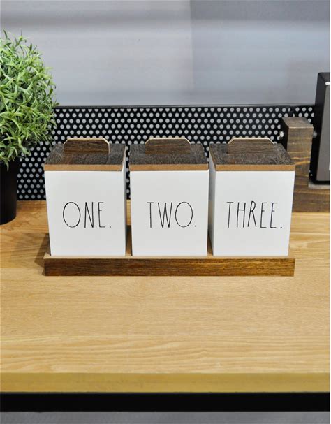 Rae Dunn Bathroom Containers For Organizing - Storage Canister Set Of 3 With Lids And Wood Tray - Makeup And Accessories Holder