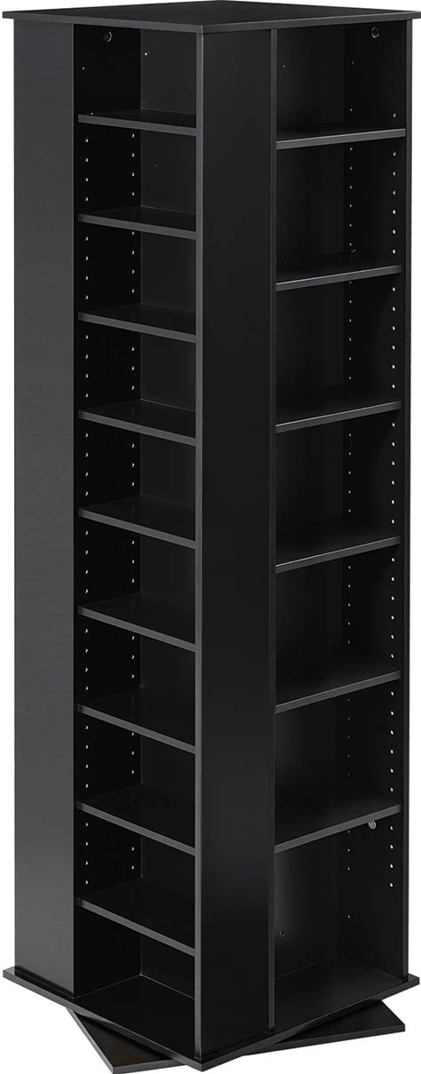 XIMN 360° Rotating Bamboo CD/DVD Shelf - 6-Tier Space-Saving Media Storage Cabinet For Movies, Organizer With Super Compact Design (Black, 6 Tier)