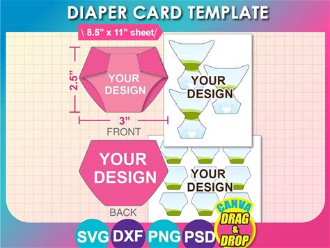 Diaper Card Template: Baby Shower Invitation Canva, SVG, DXF, Png, Psd, 8.5"X11" Sheet