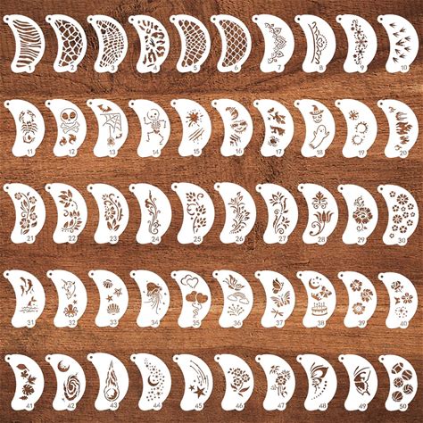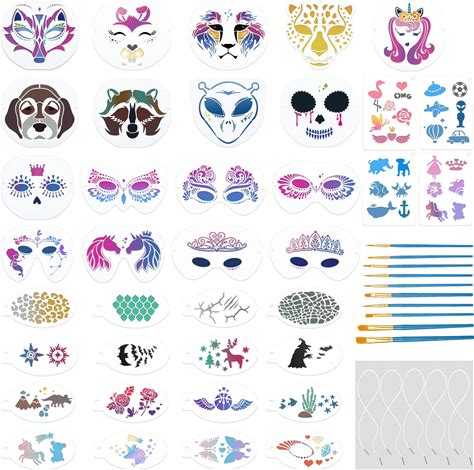 Fainne 68 Pcs Face Paint Stencils Kit, 48 Reusable Facial Painting Stencils With 10 Stickers 10 Painting Brushes Plastic Tattoo Templates For
