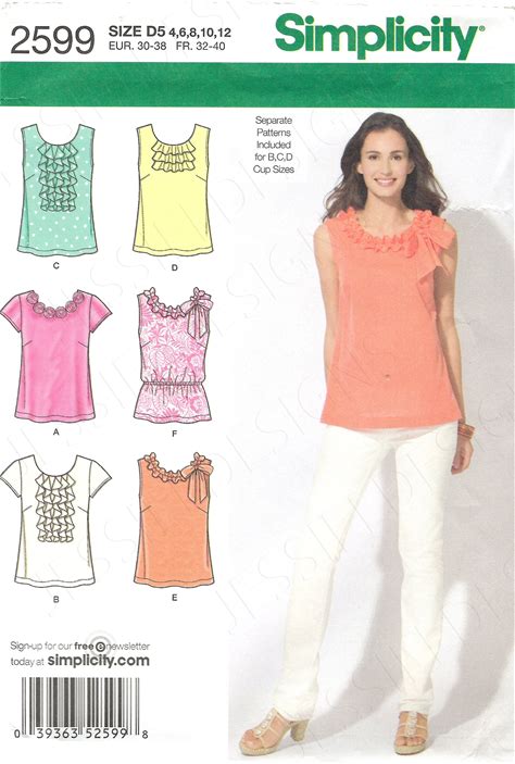 Uncut Simplicity Sewing Pattern 2599 Misses Top With Trim Variations Size Size 4-12 12-20 FF