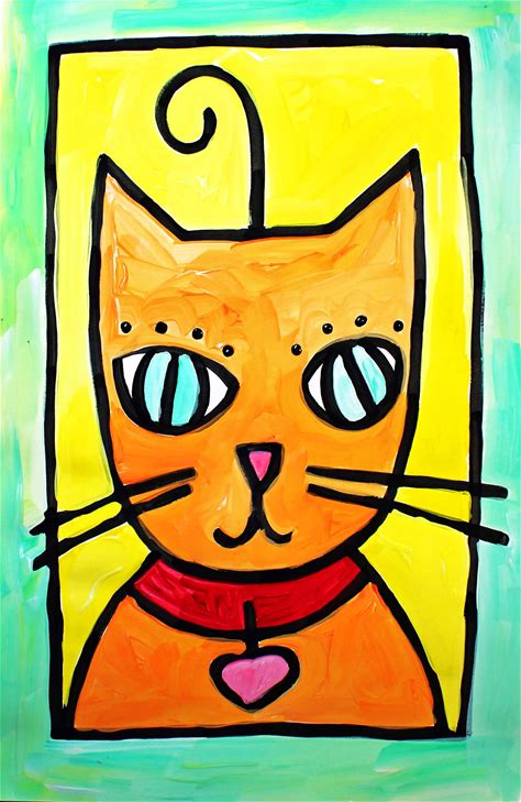 CUTE CAT PORTRAIT | Kid's Video Art Lesson | Drawing & Tempera Painting Project | Beginner's Homeschool Art Class Cartoon Tutorial