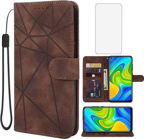 Asuwish Compatible With Xiaomi Redmi Note 9 / Redmi 10X 4G Wallet Case And Tempered Glass Screen Protector Leather Flip Cover Card Holder Cell