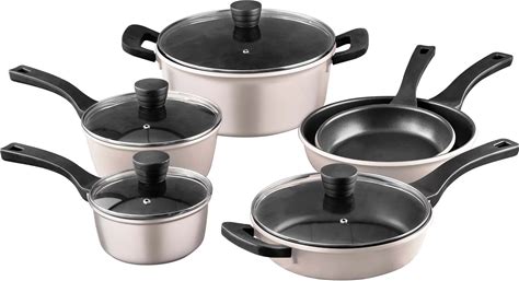 Retro By Bergner - 10 Pc Non Stick Cast Aluminum Pots And Pans Cookware Set, 10 Pieces, Champagne