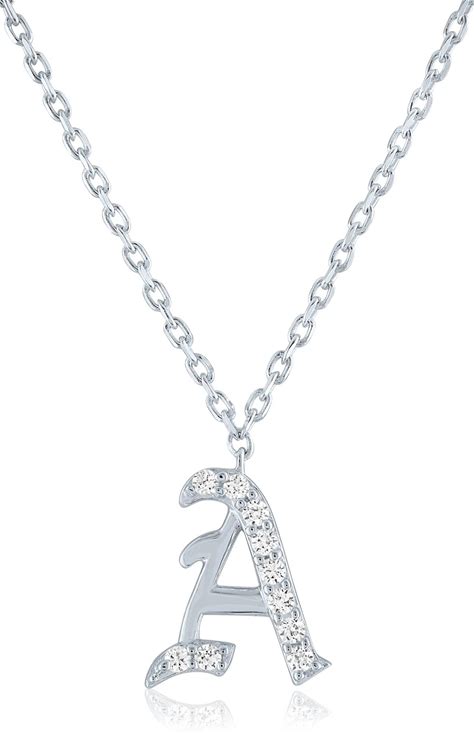 Diamond Accent Gothic Script A Initial Pendant Necklace | Sterling Silver | White | Size 18" | Helzberg Diamonds