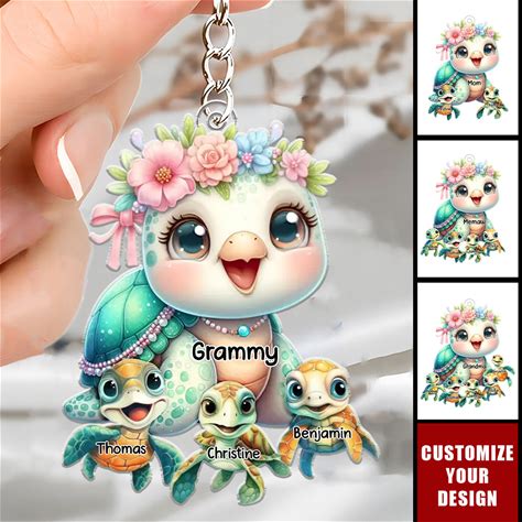 Personalized Turtle Keychain - "In Lifes Ocean, Mommy Is Our Turtle" Acrylic Accessory Gift For Mom Or Grandma