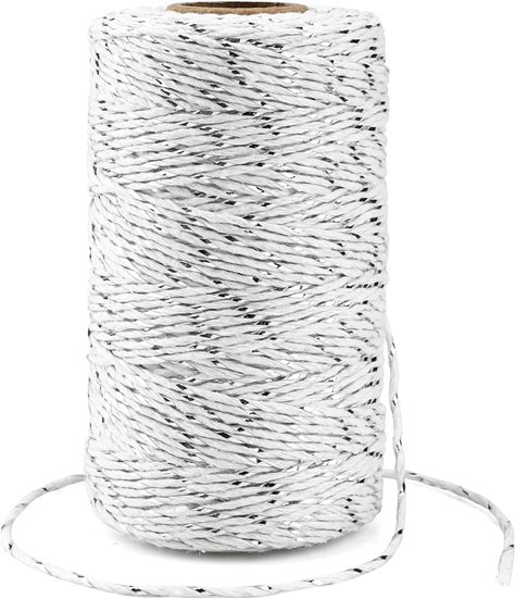 G2PLUS Silver White String - 2mm 328ft Bakers Twine For Gift Wrapping, White Cotton And Silver String DIY Crafts, Wedding, Christmas Party Decor