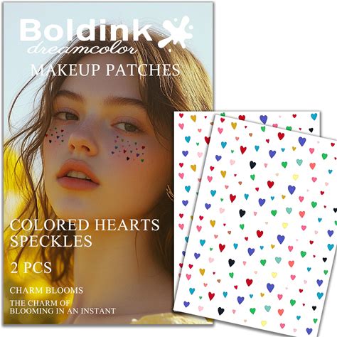 Boldink 2Pcs Makeup Stickers,Waterproof Face Colorful Love Heart Temporary Tattoo Stickers,Masquerade Stickers,Wedding Face Makeup Stickers For Women.