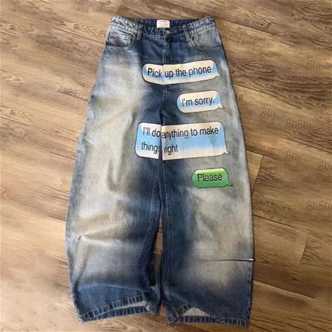 Y2K American New Pattern Embroidery Baggy Jeans Men High Street Vintage Hip Hop Fashion Casual Joker