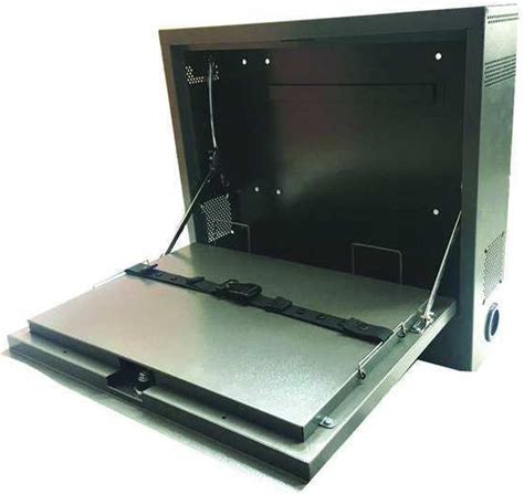 Fully-enclosed lockable steel workstation protects computer from dust and theft. Shatter-r…