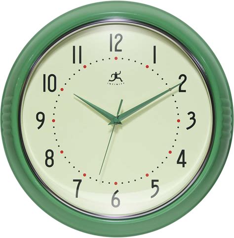 Infinity Instruments Round Retro Kitchen Wall Clock By Infinity Instruments - 9.5 Inch - Meadow Mist