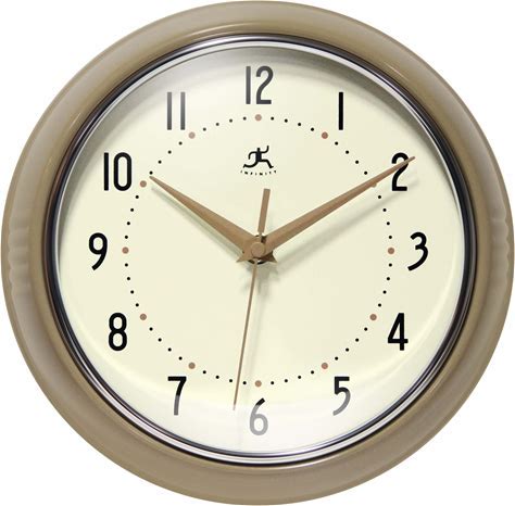 Infinity Instruments Round Retro Kitchen Wall Clock By Infinity Instruments - 9.5 Inch - Oyster Grey