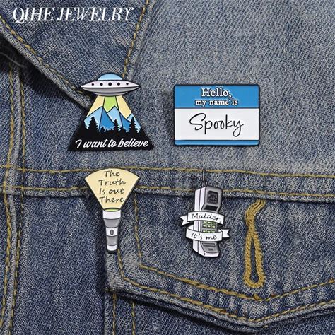 Alien UFO Flashlight Brooch Enamel Pins Custom I Want To Believe Brooches Backpack Lapel Badges Punk
