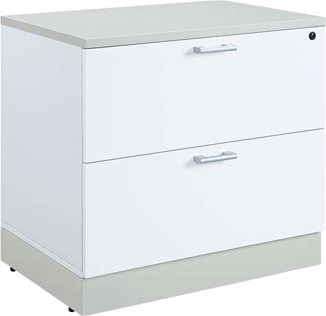 Esquire 31.5"W Two Drawer Lateral File White Laminate/Silver Laminate Kickplate And Hardware