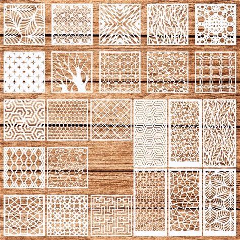 Geometric Stencils For Crafts Reusable Texture Stencils Layering Stencil For Painting On Wood Wall Scrapbooking Furniture Fabrics