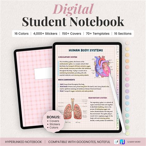 Digital Student Notebook Template For iPad Note Taking | Study Notes, Stickers & Covers | Goodnotes Digital Download