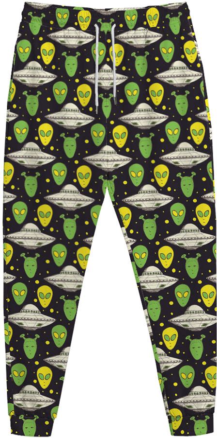 Green Alien UFO Space Print Jogger Pants