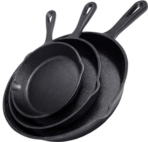 Simple Chef Cast Iron Skillet 3-Piece Set - Heavy-Duty Professional Restaurant Chef Quality Pre-Seasoned Pan Cookware Set - 10", 8", 6" Pans - For