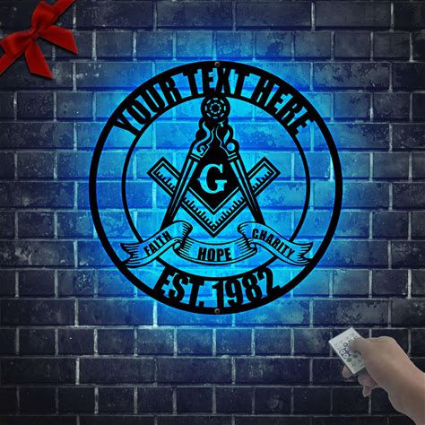 Masonic Wall Art With LED Light, Custom Freemasonry Symbol Hanging Wall Decor, Personalized Freemason Square And Compass Office Sign