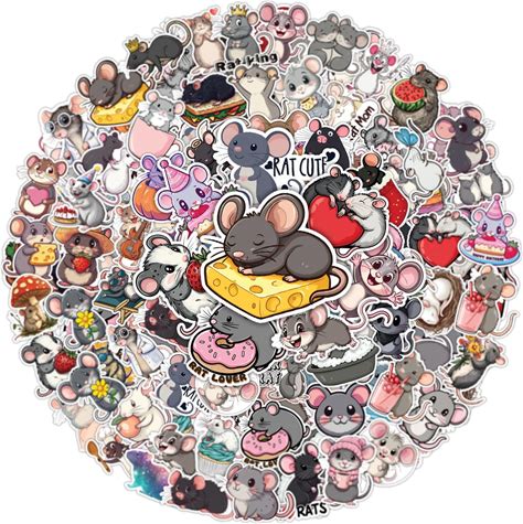 64Pcs Rat Stickers, Mouse Sticker Waterproof Decals For Water Bottles Laptop Luggage Computer Scrapbooking Teens Adults Girls Kids Funny Party