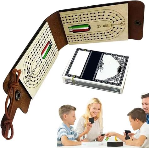 Folding Cribbage Board Game Set Fun Table Game With Wooden Board Faux Leather Case Classic Cribbage