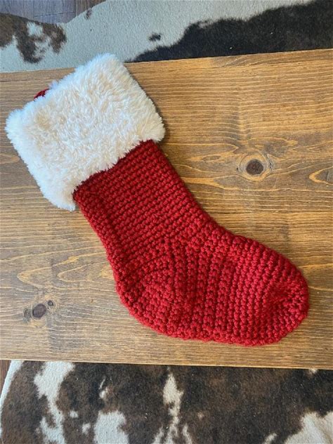 Handmade Crochet Christmas Stocking: Red With Faux Fur Cuff